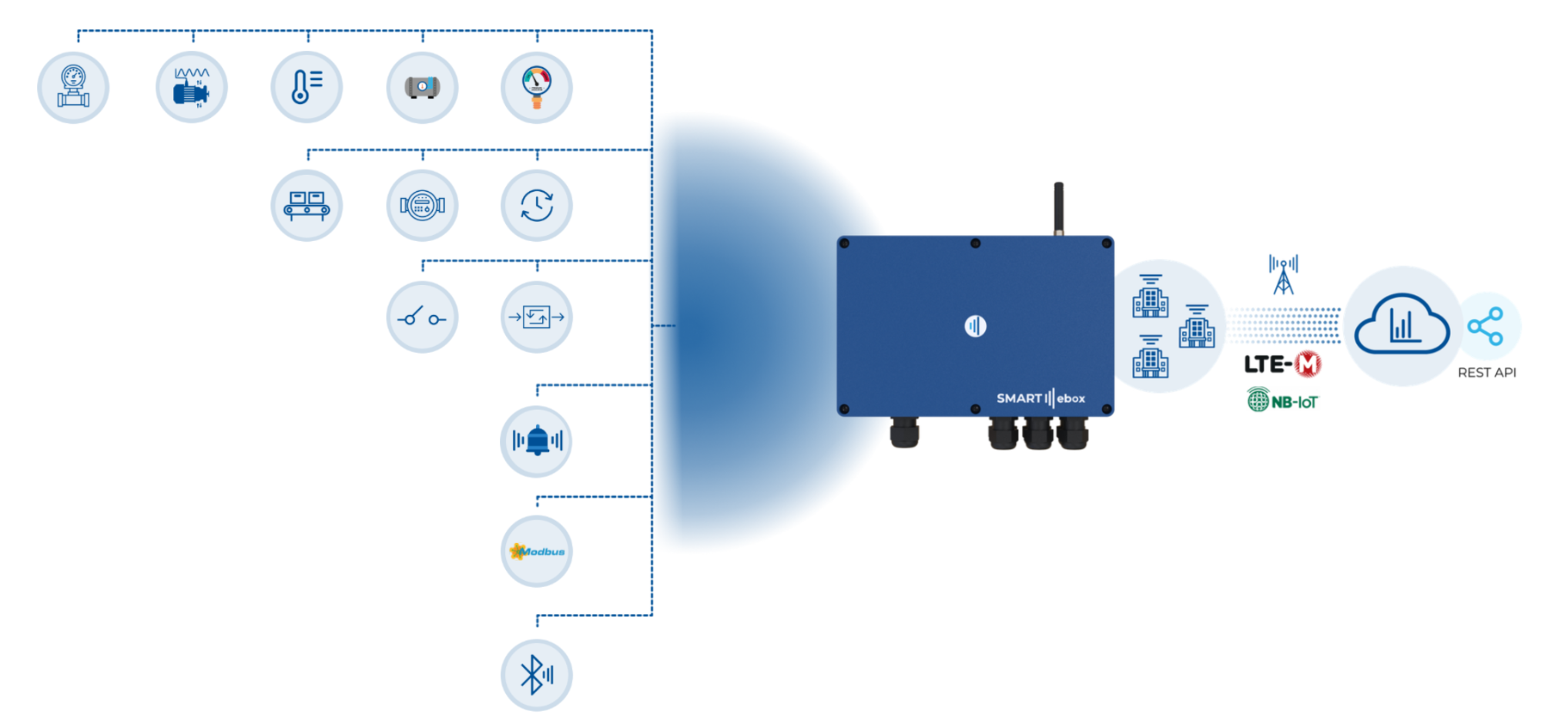Alle Lösungen basieren auf der SMARTbox als zentralem Architekturprinzip. Sie bildet das verbindende Element zwischen Sensorik, Anlagen, Konnektivität und Cloud.